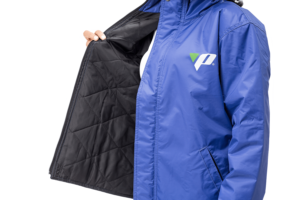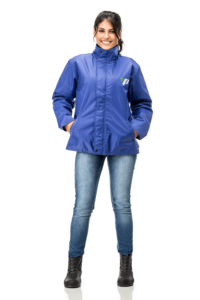 Com forro matelassê de 80g, bolsos externos e fechamento frontal com zíper e botão de pressão metálico.
